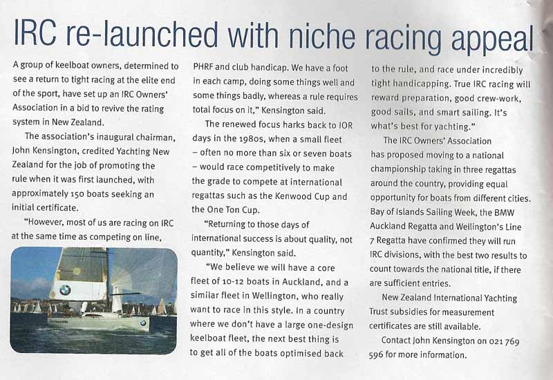 IRC on leviämässä tännekin. Ohessa leike Boating New Zealand january 2009.