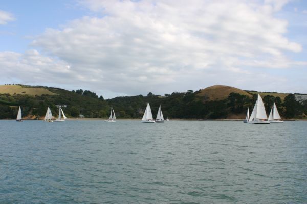 Ensimmäisen purjehduksen teimme läheiseen Waiheke saareen, jossa yövyimme kahdessa lahdessa. Tässä maassa riittää purjehduskisoja. Yhdessä Waiheken kylässä saimme katsella paikallista viikkokisaa, joka oli vastaavaa tasoa kuin meilläkin. Gastipulakin taitaa olla globaali ilmiö, koska veneissä ei paljon porukkaa ollut.