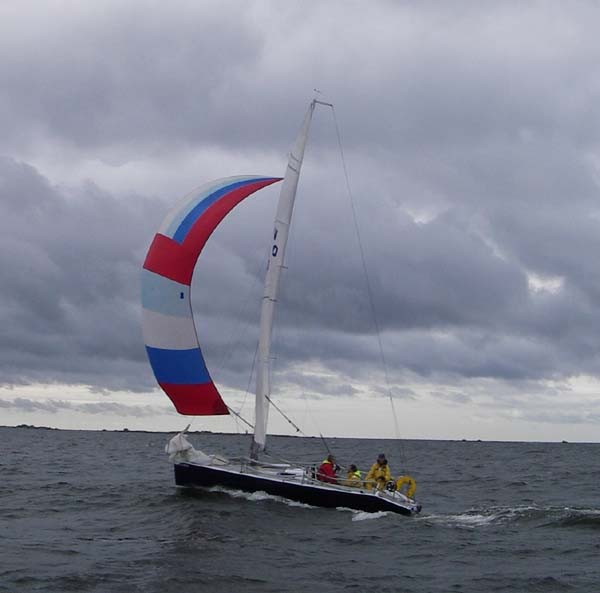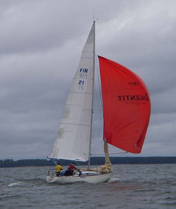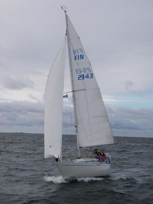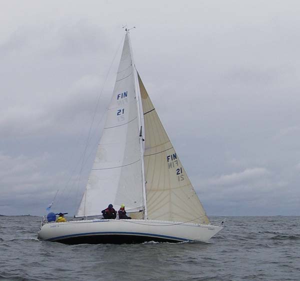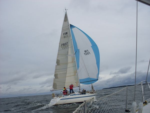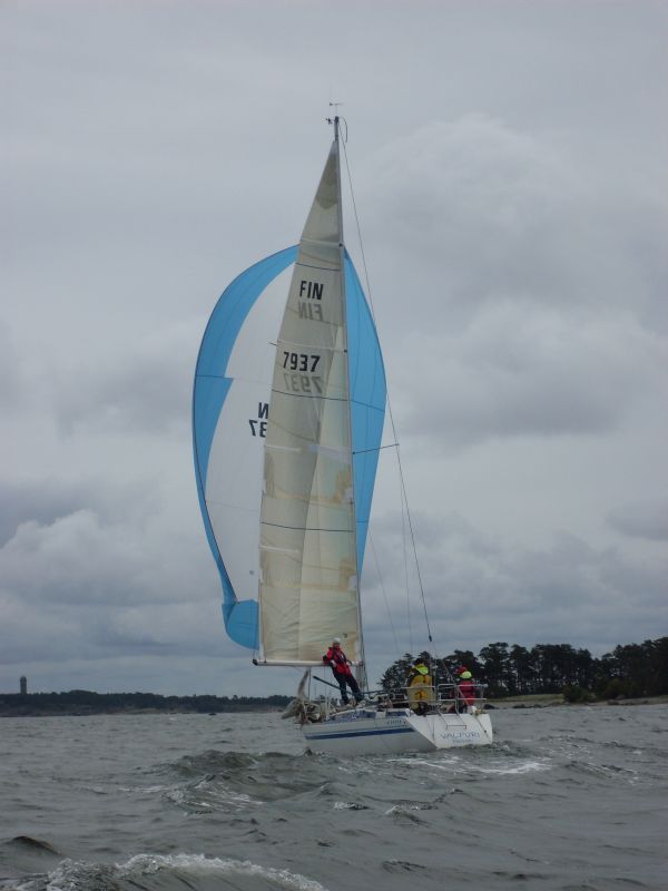 Nopealla spinnun nostolla paransimme asemiamme ylämerkillä. Loppukisa olikin sitten parasta spinnuajoa tänä vuonna. Nopeus parhaimmillaan yli 10 solmua. Ennen maalia piti päästää vielä Gitta ohi. Lasketuissa ajoissa kuitenkin voitimme. Ensimmäinen Pitkäluotovoittomme Valpurilla.