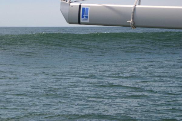Päivälläkin riitti hommia. Tuuli vaihteli ja seuraavan niemen jälkeen tuli taas puuskia. Delfiinit ilmestyivät taas hyppelemään. Ujoa porukkaa. Heti kun hain kameran, niin joka iikka oli hävinnyt.