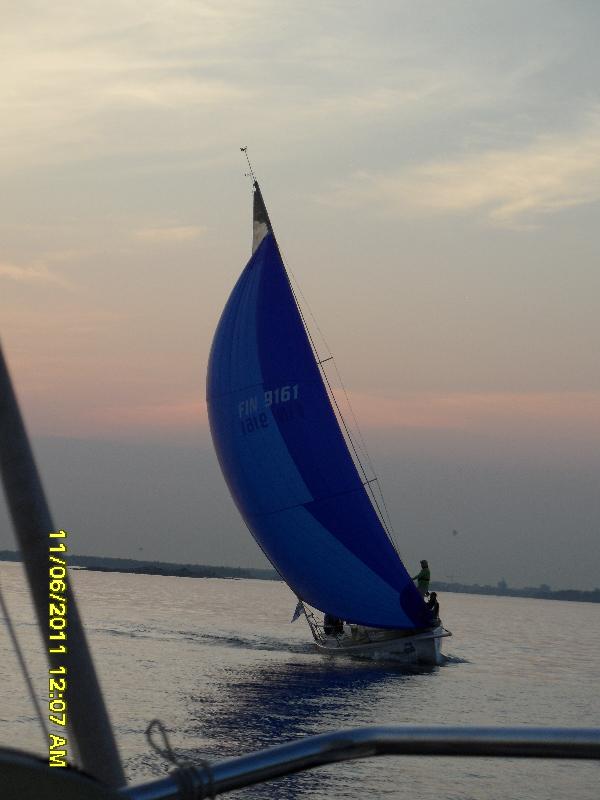 Haukilahdelta päästyämme tuuli aukeni niin, että saimme spinnun vetoon. Shere Khan yritti yäläpuolellemme genaakkerillaan, mutta saimme nostatettua riittävästi. Pääsivät Gråsalle mentäessä ohi alakautta.
