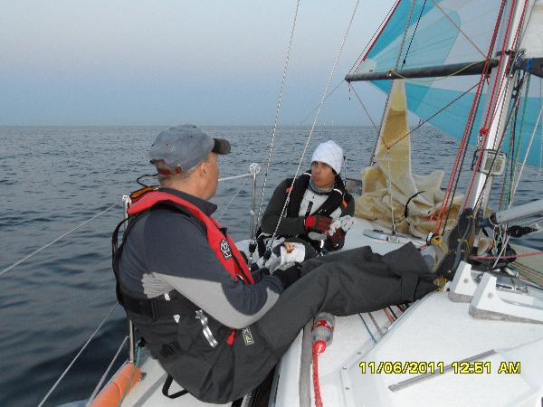 Leppoisaa jutustelua saaren kierrossaPuolivälissä kiertoa alkoi univuoroni. Ohjeistin vain, että spinnu ylös mahdollisimman nopeasti ja Kotkan portille pitää päästä ennen kuin herään.