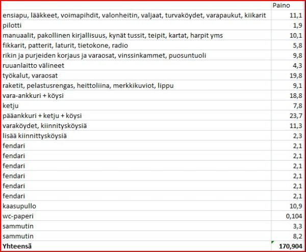 Hämmästykseni oli suuri, kun Valpurin paino ORC varusteissa oli 4497 kg. Eli vähemmän kuin punnittu tyhjä vene.