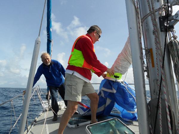 Aamulla heräsin koneen jytkytykseen. Kipparska Riitta oli vahdissa. Pika-aamiaisen jälkeen sammutettiin kone ja alettiin taas purjehtia. Genaakkeria alettiin kaivata, mutta kun ei tiedetty onko sen nostamisessa jotain jippoa, niin päätettiin odottaa kipparin heräämistä. Sana genaakkeri herätti kipparin parissa minuutissa.