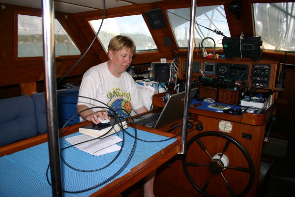 Paluumatkalla toivottiin tasaisen pasaatituulen pysyvän idässa. Toisin kuitenkin kävi. Tuuli ensin heikkeni ja kääntyi sitten pohjoiseen. No päästiin sitten vielä kryssimäänkin. Ruorinvääntäjille tuli kysyntää. Jonain päivänä venettä ajoivat kaikki muut paitsi Riitta. Mukana tuuliperäsin Väinö ja autopilotti Simo. Lämmin ruoka oli tietysti taas pöydässä heti ankkuroiduttuamme.